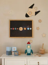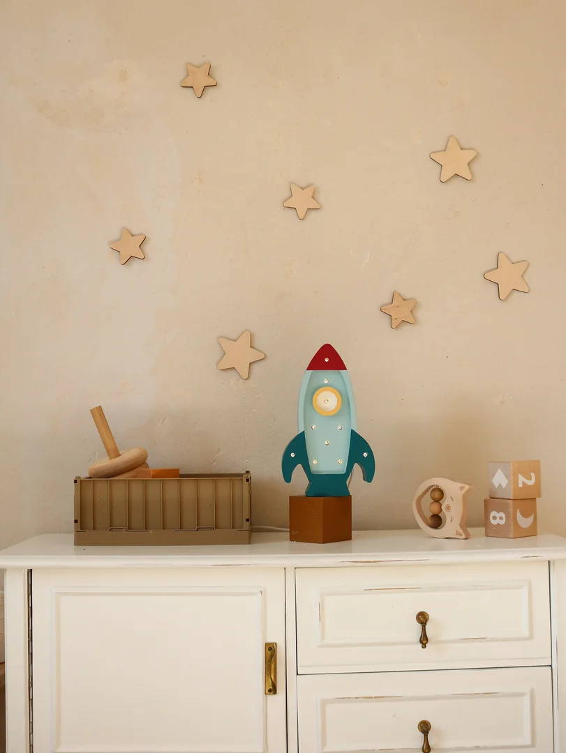 Ce joli petit vaisseau spatial est fabriqué avec un grand souci du détail, principalement à la main, dans une entreprise familiale en Pologne. Les lampes Little Lights sont fabriquées à partir de bois de pin 100 % certifié FSC. Grâce au matériau naturel utilisé et à la méthode de fabrication en grande partie manuelle, chaque veilleuse est unique. La lumière LED chaude crée une atmosphère agréable dans la chambre d'enfant et le design attrayant fait de la lampe un point de mire décoratif.